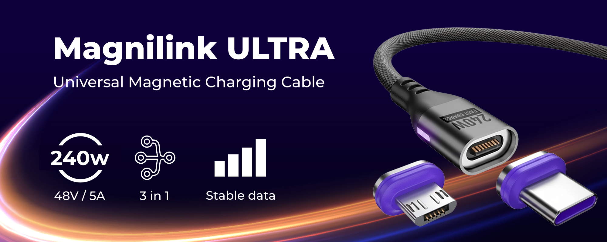 Meet the Magnilink ULTRA: our most reliable magnetic charging cable yet, engineered for speed, stability, and universal compatibility. With up to 240W of USB Power Delivery, it’s powerful enough to charge laptops, smartphones, tablets, and more — all from one cable.